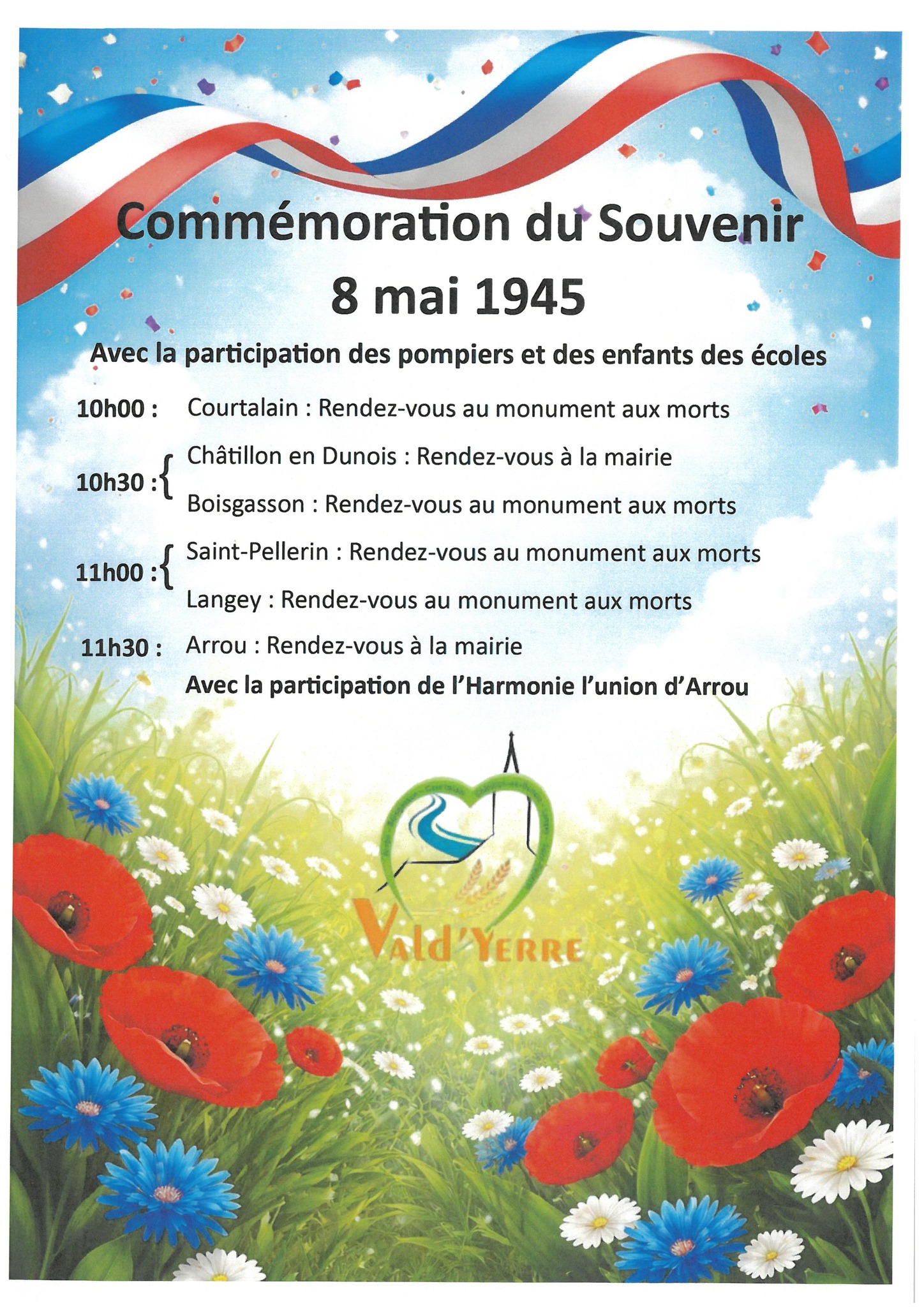 Cérémonie de commémoration de la victoire de la seconde Guerre Mondiale + Ajouter à mon Agenda Google + iCal / Outlook export 00 jours 00 heures 00 minutes 00 secondes Date Mai 08 2026 Heure All Day Partagez cet événement